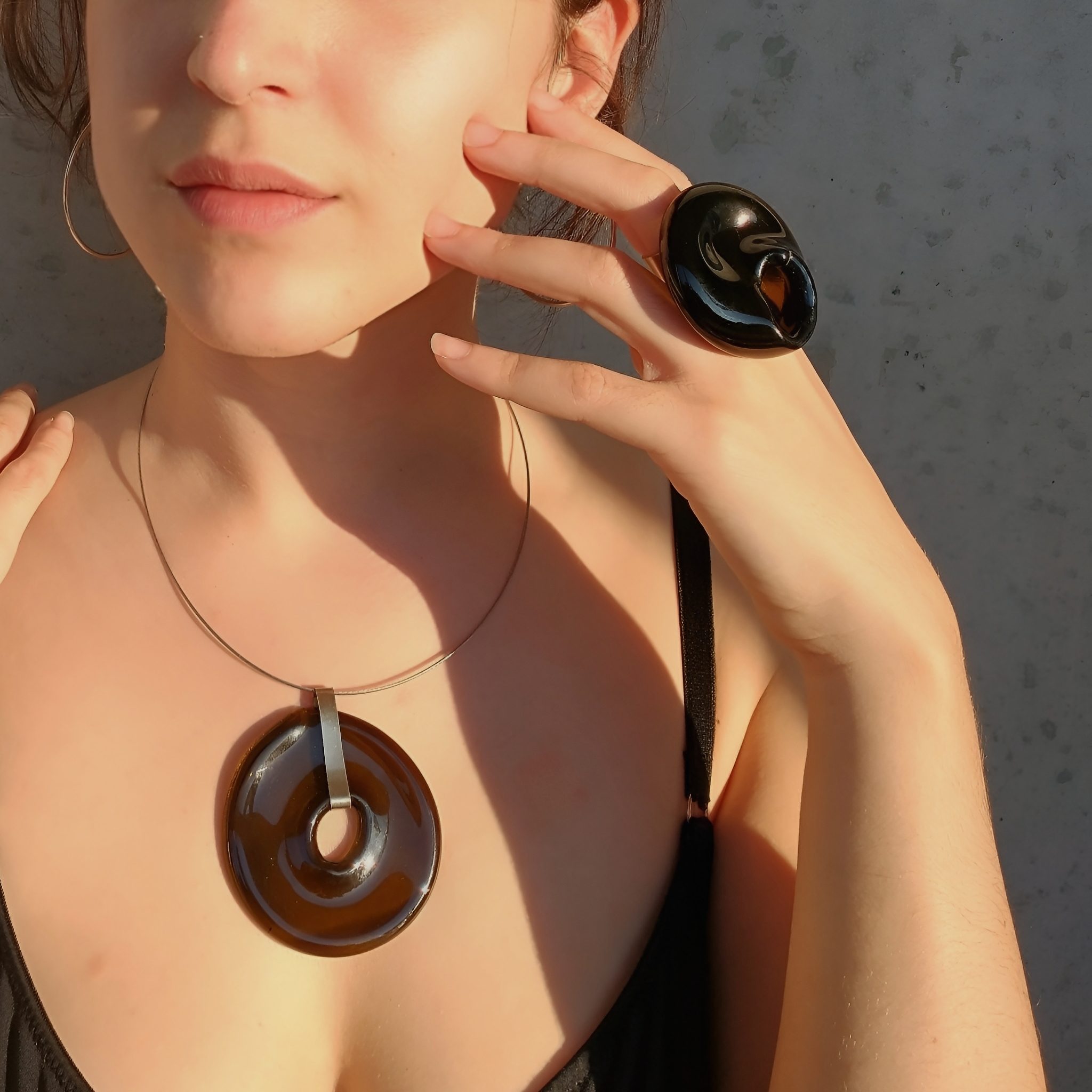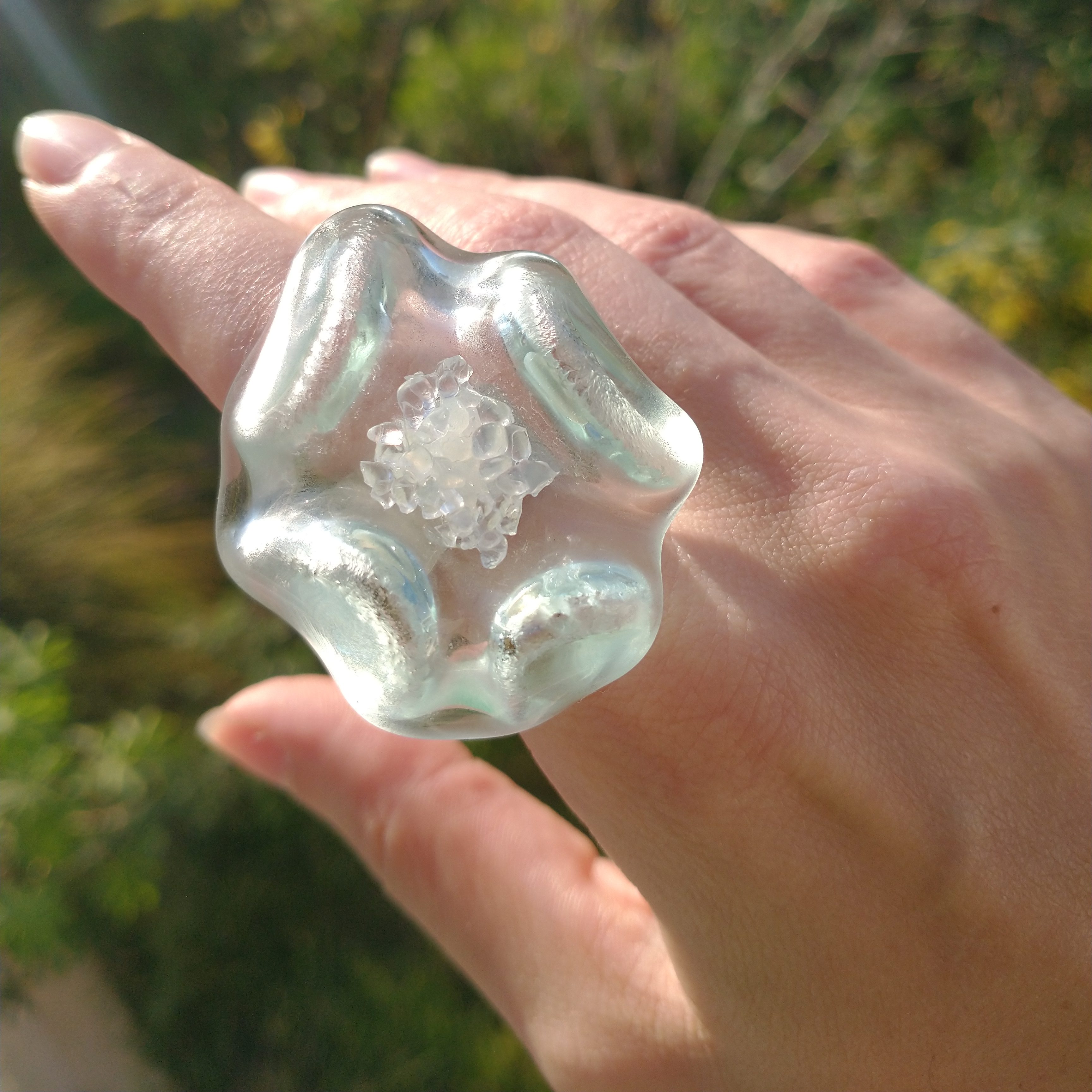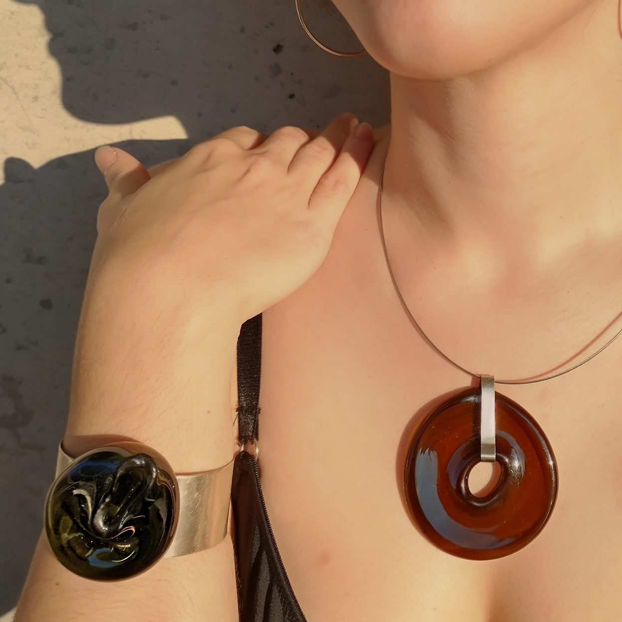 Although this is not my first time working with glass, it is my first experience with metal finishing. Discovering the principles of forming pieces in nickel silver was a real challenge and marks a new path I’m eager to continue exploring.